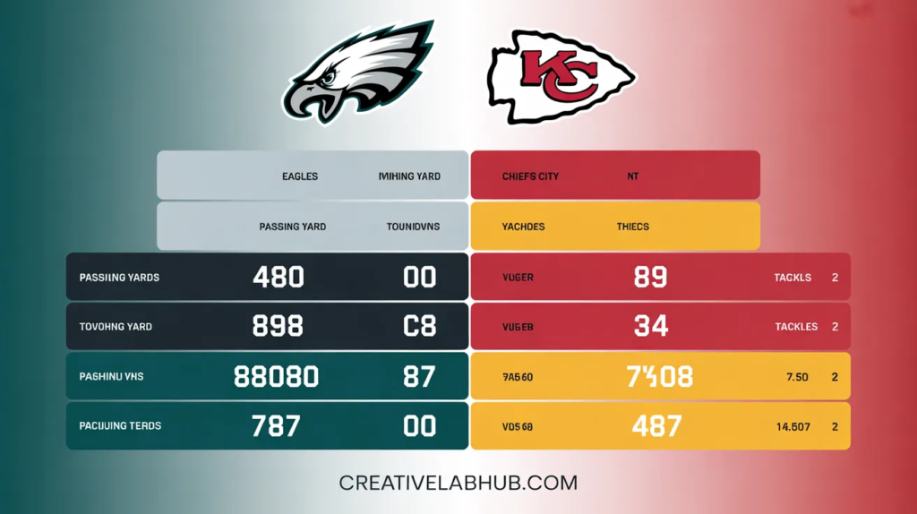 Whether you’re a die-hard Eagles fan reliving every moment, a Chiefs supporter trying to understand what went wrong, or just a football fan who wants the full statistical breakdown, this article covers everything — from MVP numbers to defensive heroics to individual player performances you won’t want to miss.