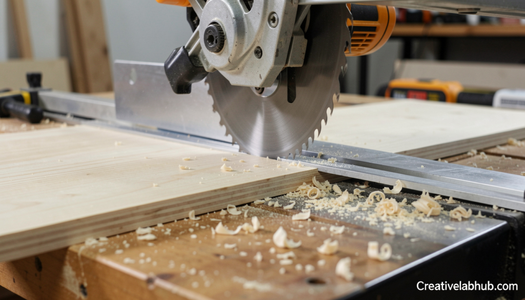 - Tear-out: Track saws produce virtually zero tear-out on the top face. Circular saws often leave rough edges.